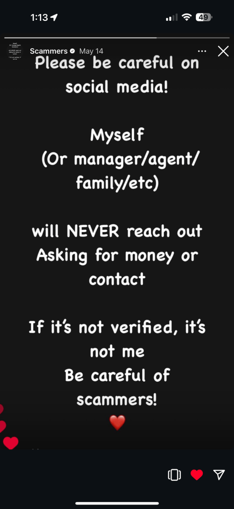 These scams are growing more sophisticated, with AI-driven deepfakes and forged IDs making fraud harder to detect (When Fame Becomes a Liability). Sam’s doing his part—posting warnings and calling out fakes—but as an actor, not a cybersecurity expert, his reach is limited. Fans must use common sense to spot red flags, like unverified accounts or suspicious requests for money. On Instagram, verify Sam’s account (@samheughan) by checking for the blue checkmark. On X, confirm his main account (@SamHeughan) by its long history and consistent posts, even without a checkmark. Report suspicious profiles like “SamHeughan12345” to platforms like Instagram or X, and never send money or personal details to unverified sources. Community efforts, like X posts from @SimoneSkippy and @peekaboo_jen reporting fake accounts (X post by SimoneSkippy, X post by peekaboo_jen), show how we can amplify Sam’s warnings.